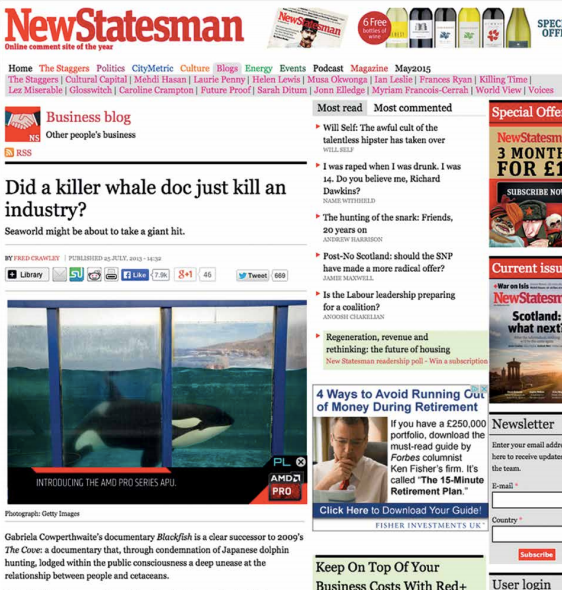 The New Statesman on BlackfishThe Hollywood Reporter on Blackfish